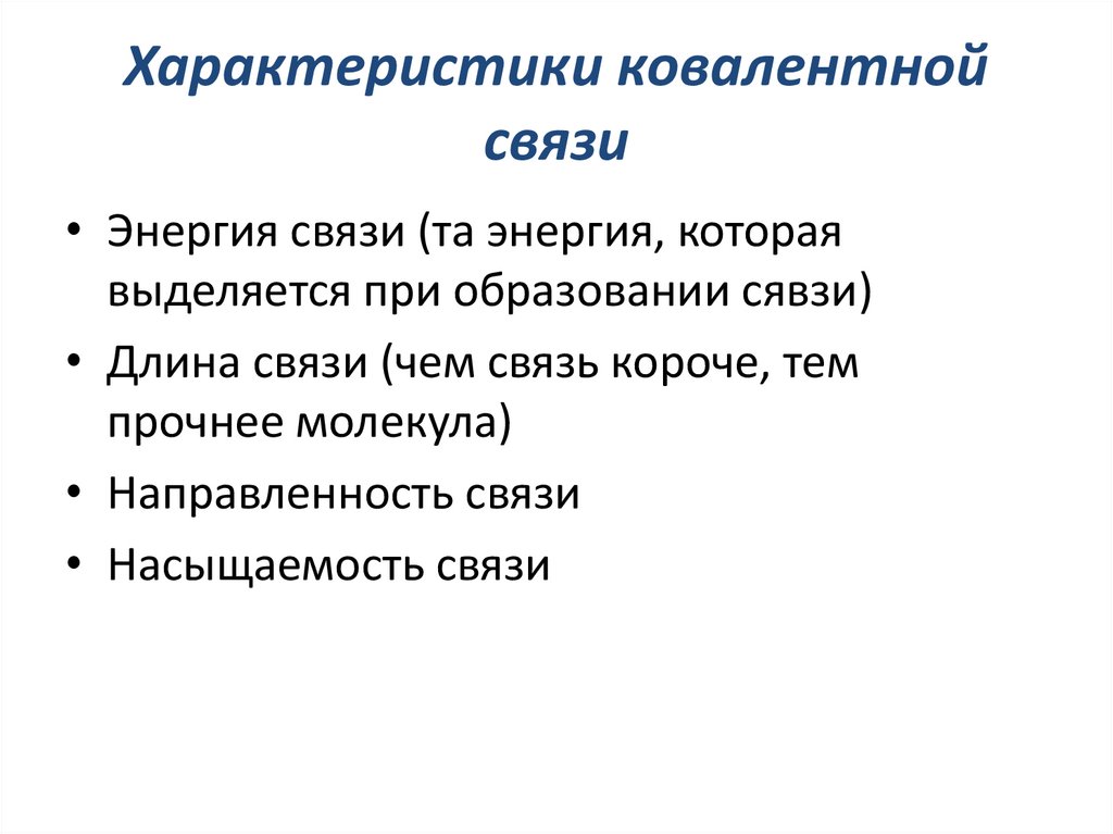 Характеристики ковалентнойсвязи