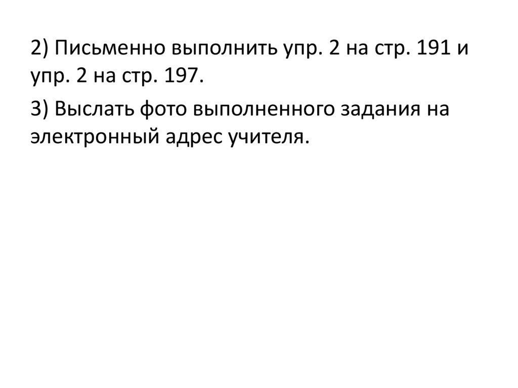 2) Письменно выполнить упр. 2 на стр. 191 иупр. 2 на стр. 197.