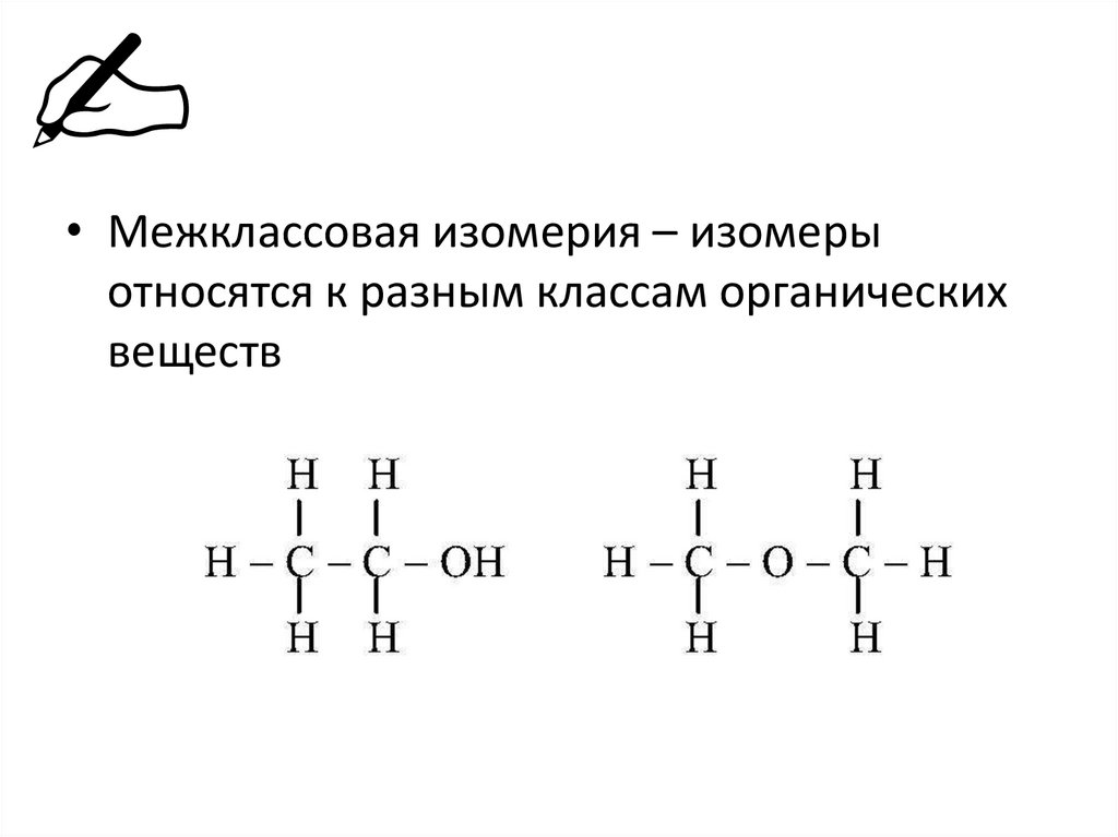 • Межклассовая изомерия – изомерыотносятся к разным классам органических