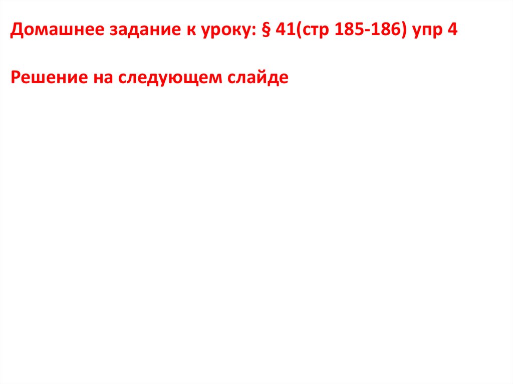 Домашнее задание к уроку: § 41(стр 185-186) упр 4Решение на следующем слайде