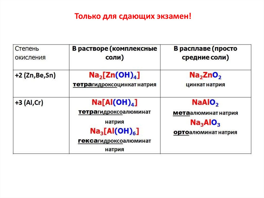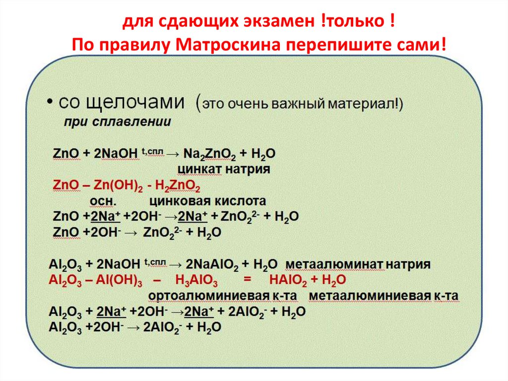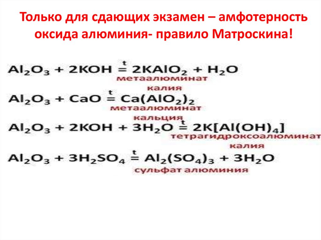 Только для сдающих экзамен – амфотерностьоксида алюминия- правило Матроскина!