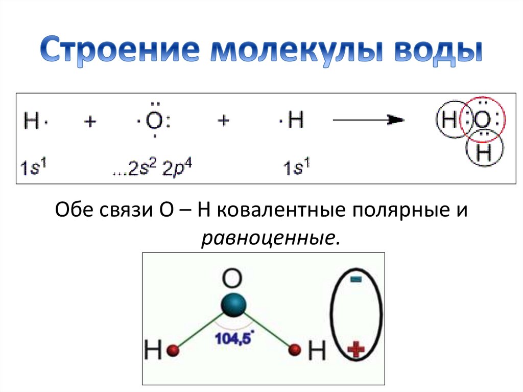 Обе связи О – Н ковалентные полярные иравноценные.