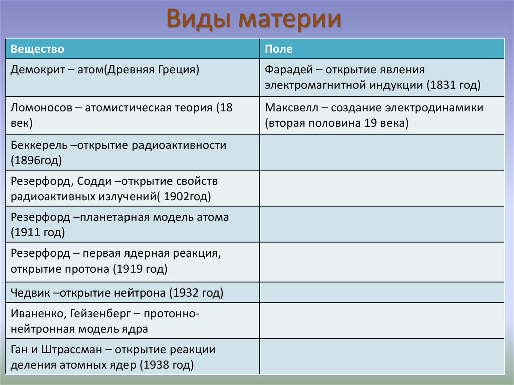 Виды материиВещество