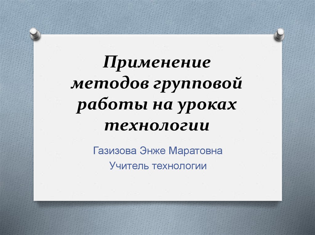 Применение методов групповой работы на уроках технологии