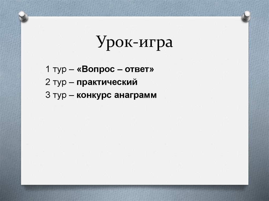 Урок-игра1 тур – «Вопрос – ответ»