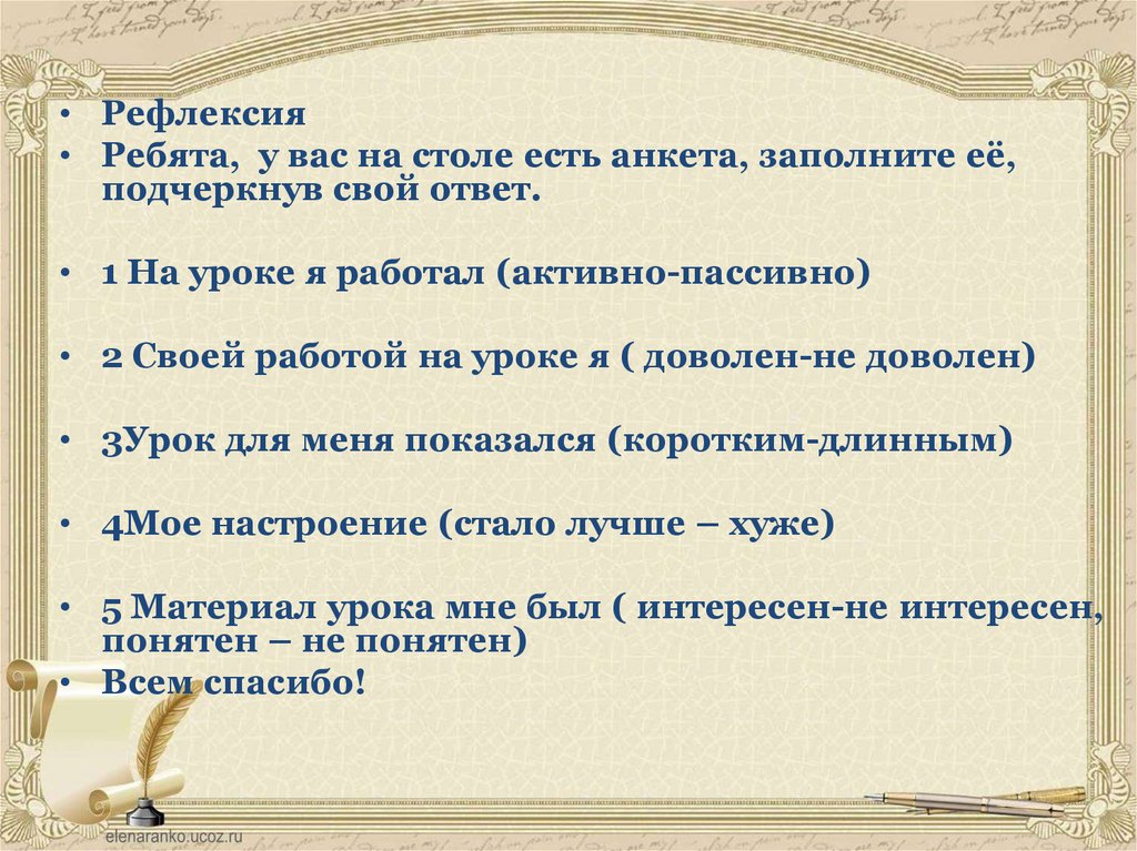 • Рефлексия• Ребята, у вас на столе есть анкета, заполните её,