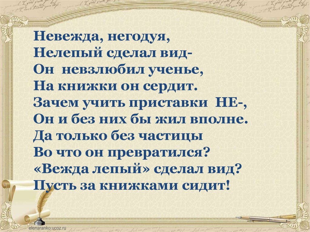 Есть слова, они без НЕ в глупость превращаются,Их без НЕ тебе и мне ставить запрещается.