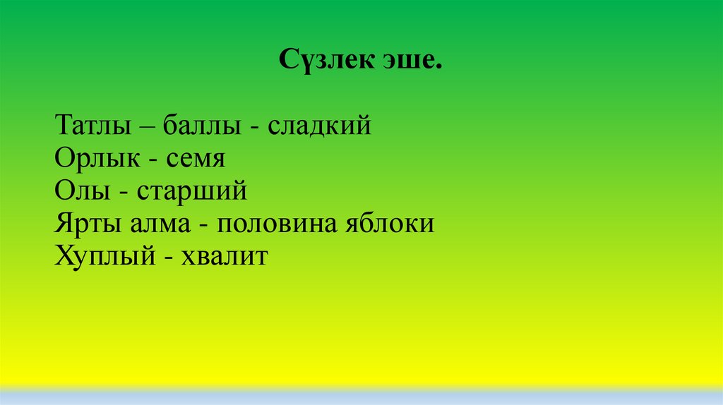 Сүзлек эше.Татлы – баллы - сладкий