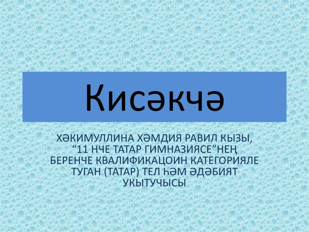 КисәкчәХӘКИМУЛЛИНА ХӘМДИЯ РАВИЛ КЫЗЫ,