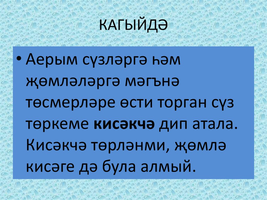 КАГЫЙДӘ• Аерым сүзләргә һәм