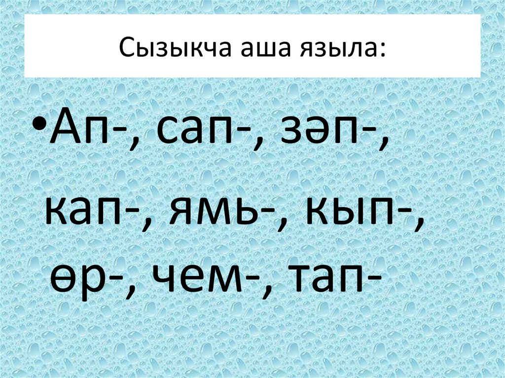 Сызыкча аша языла:•Ап-, сап-, зәп-,