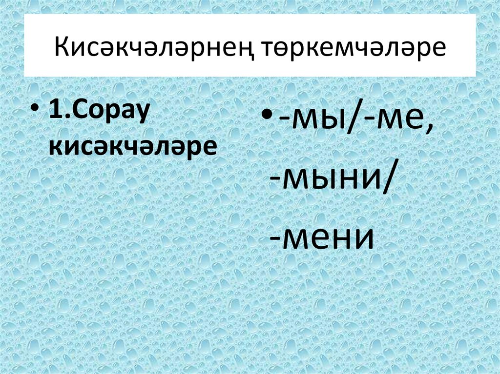 Кисәкчәләрнең төркемчәләре• 1.Сорау