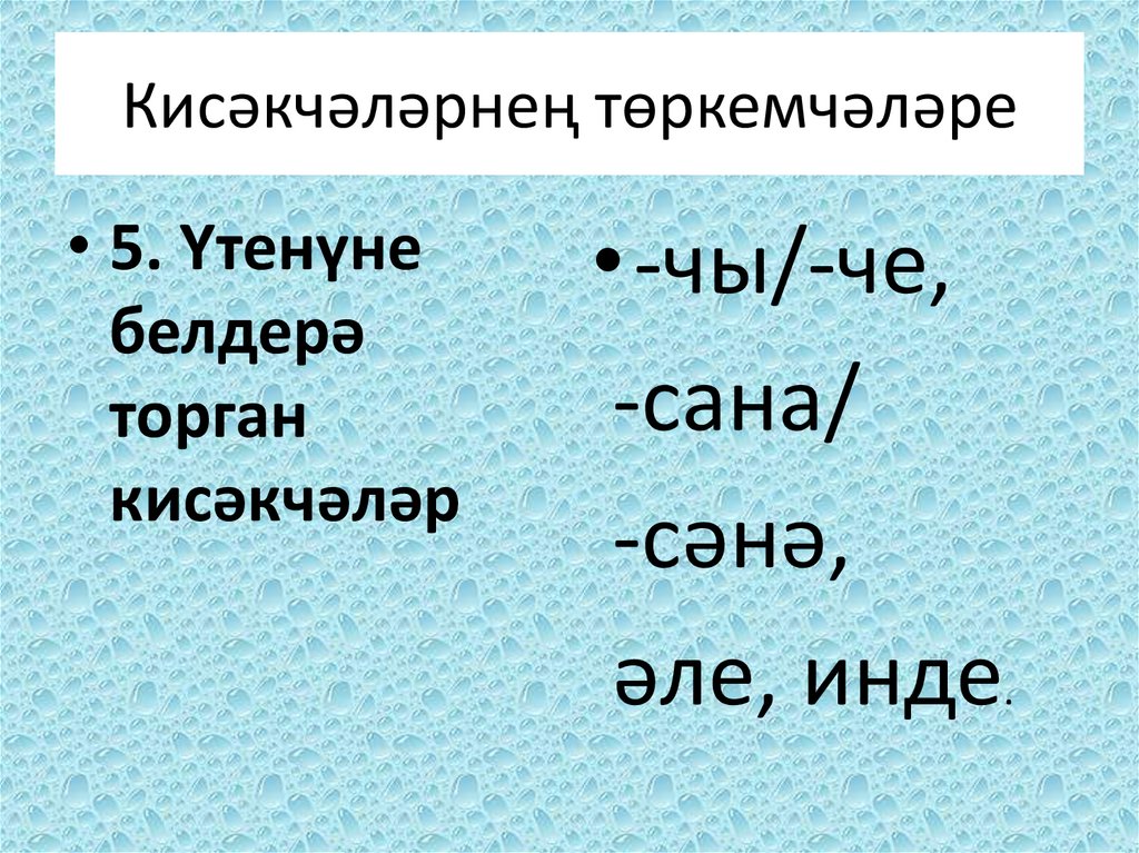Кисәкчәләрнең төркемчәләре• 5. Үтенүне