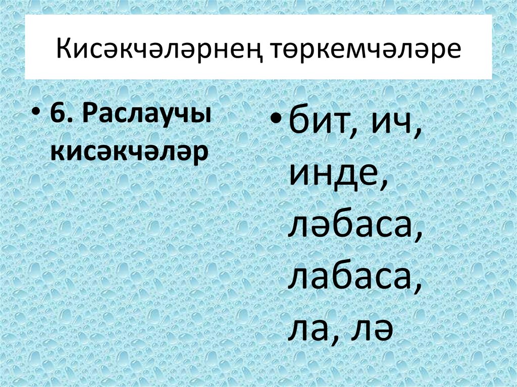 Кисәкчәләрнең төркемчәләре• 6. Раслаучы