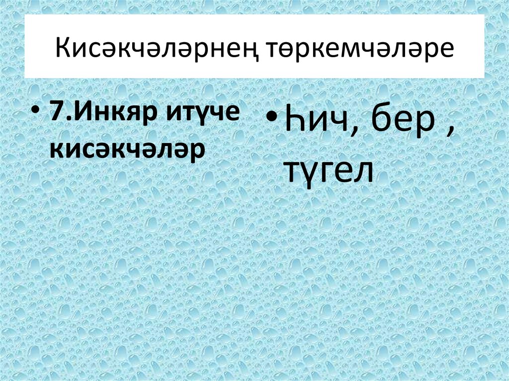 Кисәкчәләрнең төркемчәләре• 7.Инкяр итүче