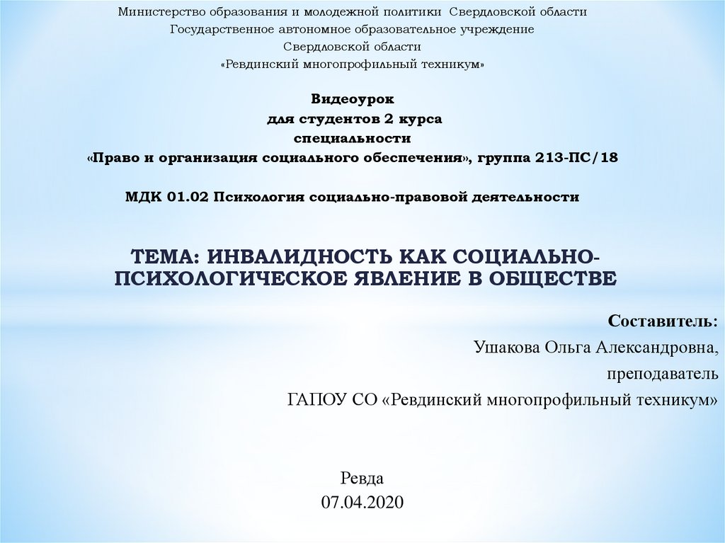ТЕМА: ИНВАЛИДНОСТЬ КАК СОЦИАЛЬНОПСИХОЛОГИЧЕСКОЕ ЯВЛЕНИЕ В ОБЩЕСТВЕ