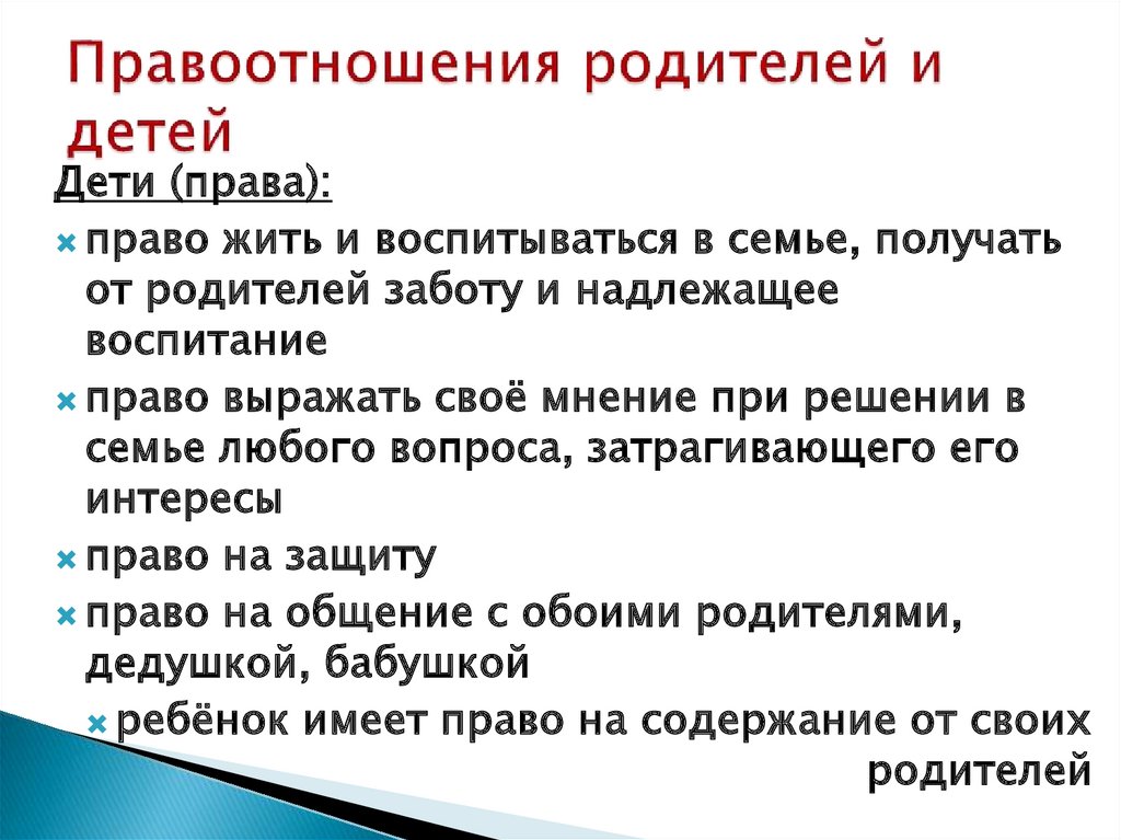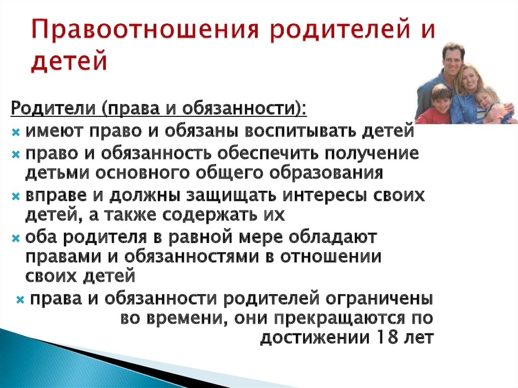 Родители (права и обязанности):имеют право и обязаны воспитывать детей