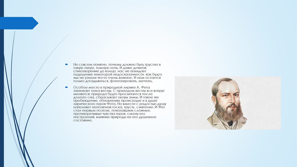 наполняет непонятная тоска, грусть, смятение. И Фет