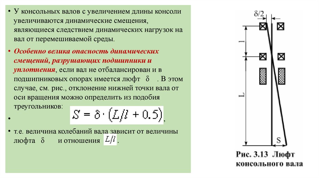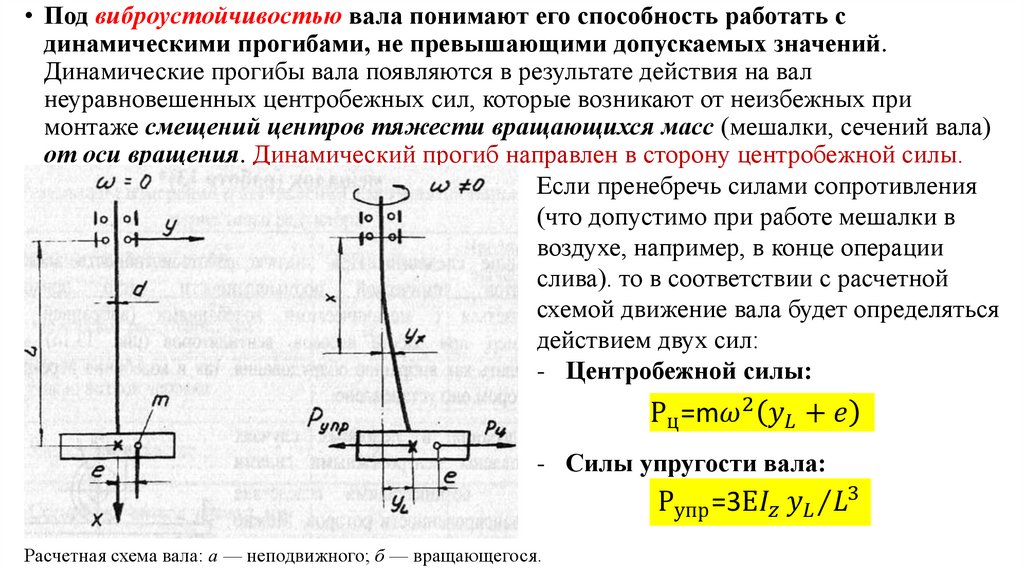 • Под виброустойчивостью вала понимают его способность работать сдинамическими прогибами, не превышающими допускаемых значений.