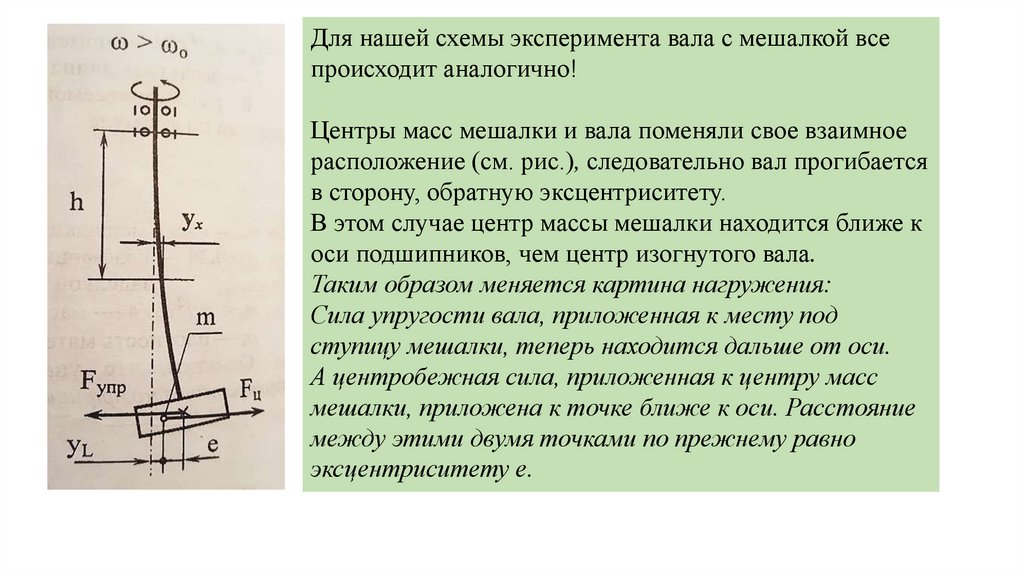 от оси вращения. Динамический прогиб направлен в сторону центробежной силы.