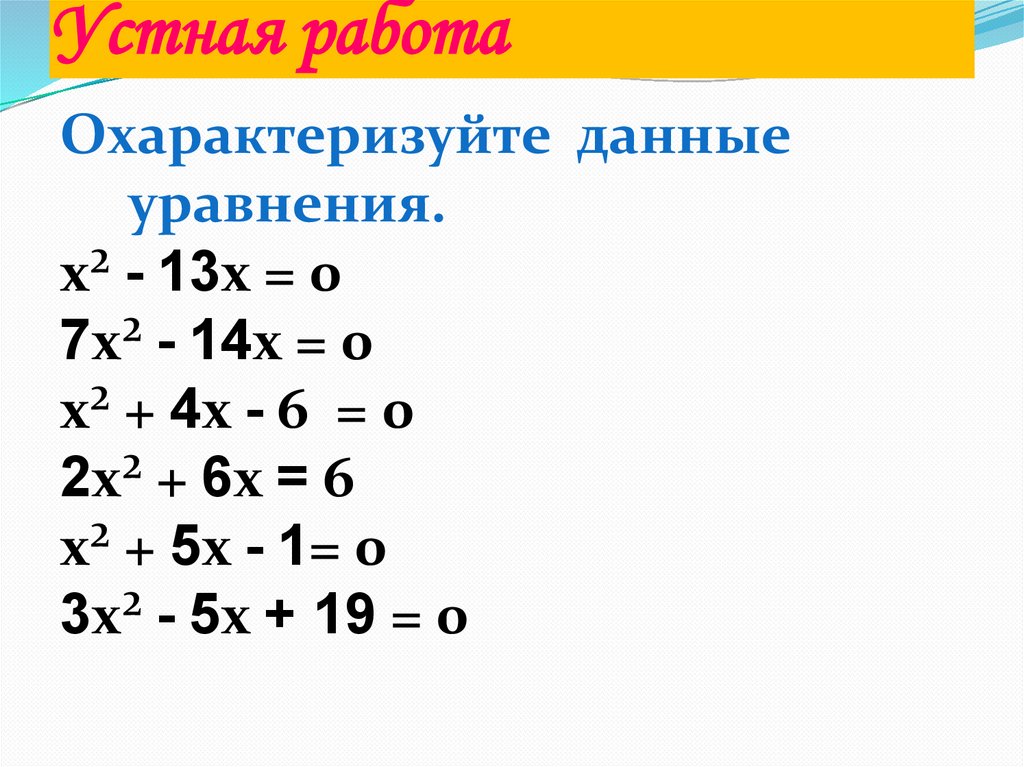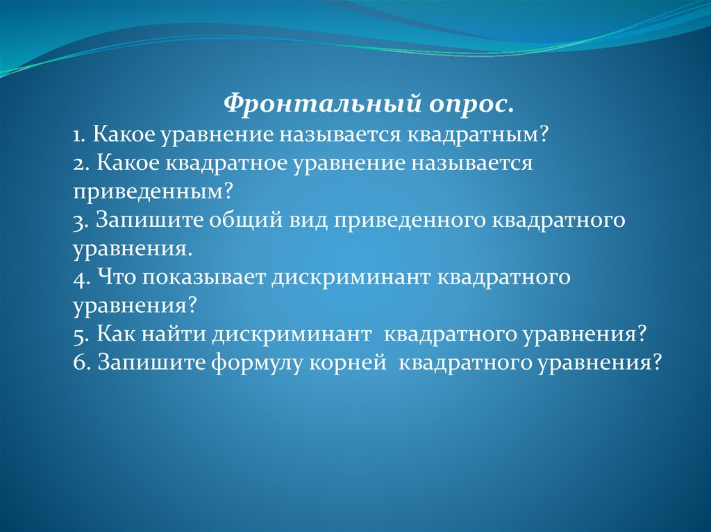 Фронтальный опрос.1. Какое уравнение называется квадратным?