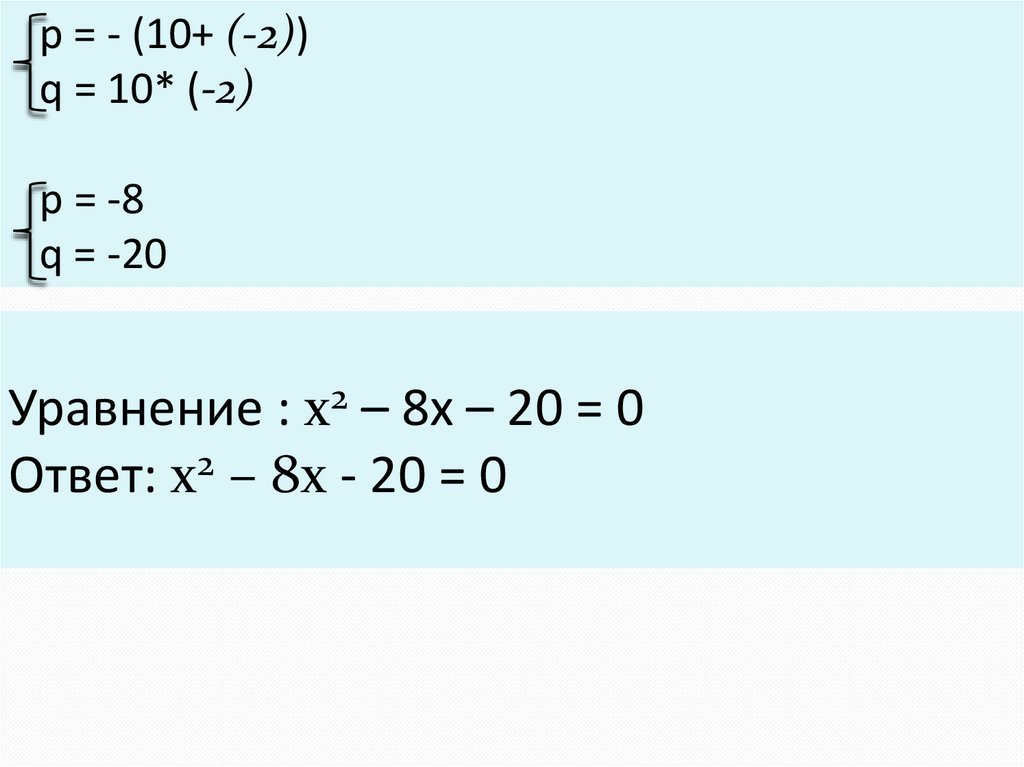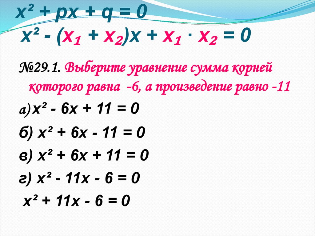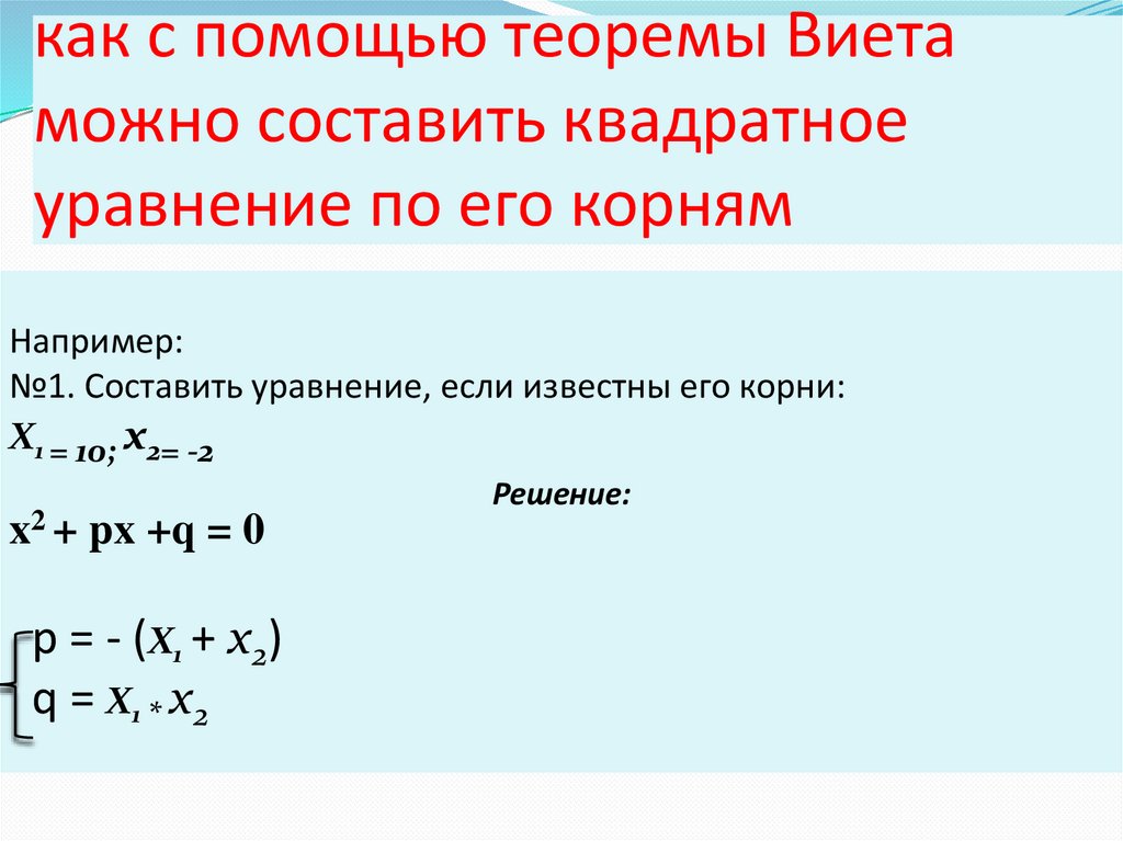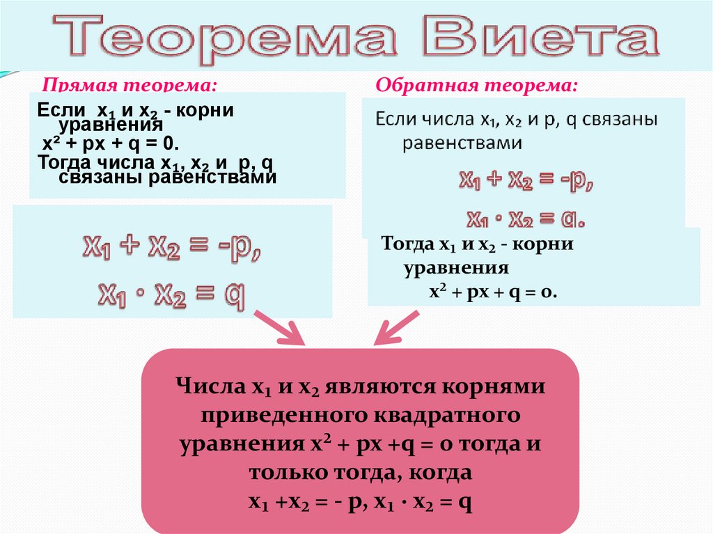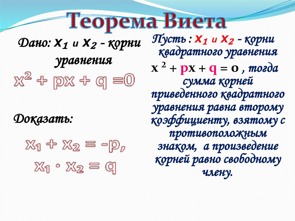 x² + px + q = 0x² - (х₁ + х₂)х + х₁ ∙ х₂ = 0