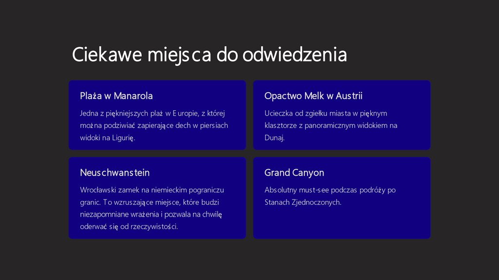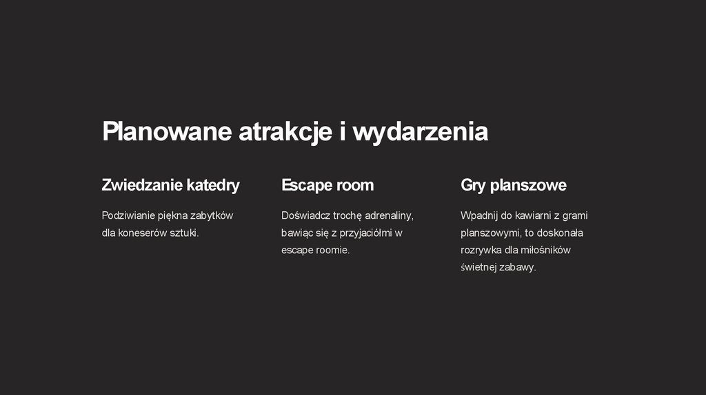 miejsca, w których chcielibyśmy spędzić czas. Dzięki wielu możliwościom