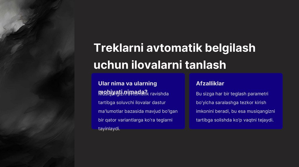 Siz treklarni avtomatik belgilash uchun ilovalar/dasturlardan foydalanishingiz