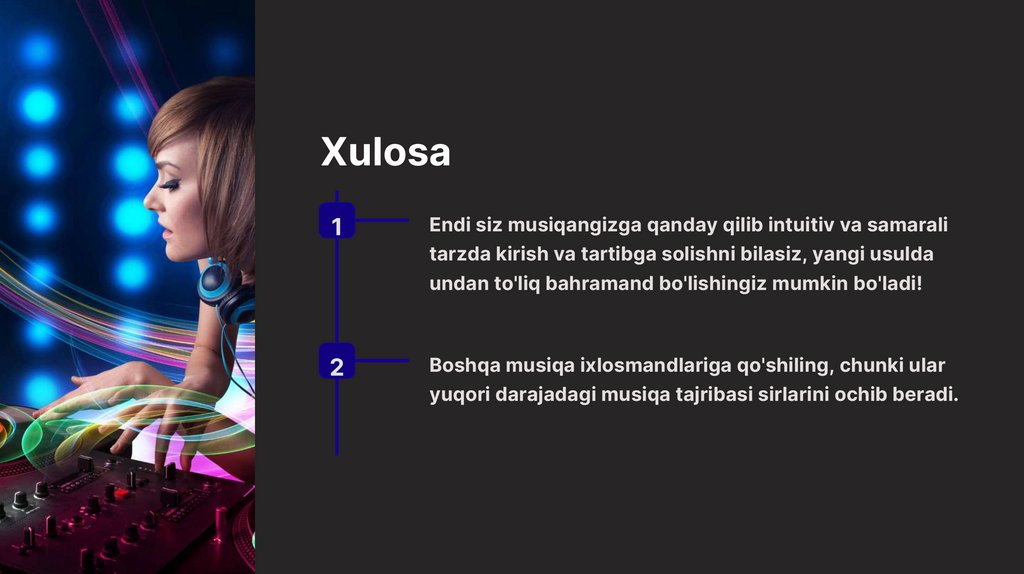 yuqori darajadagi musiqa tajribasi sirlarini ochib beradi.