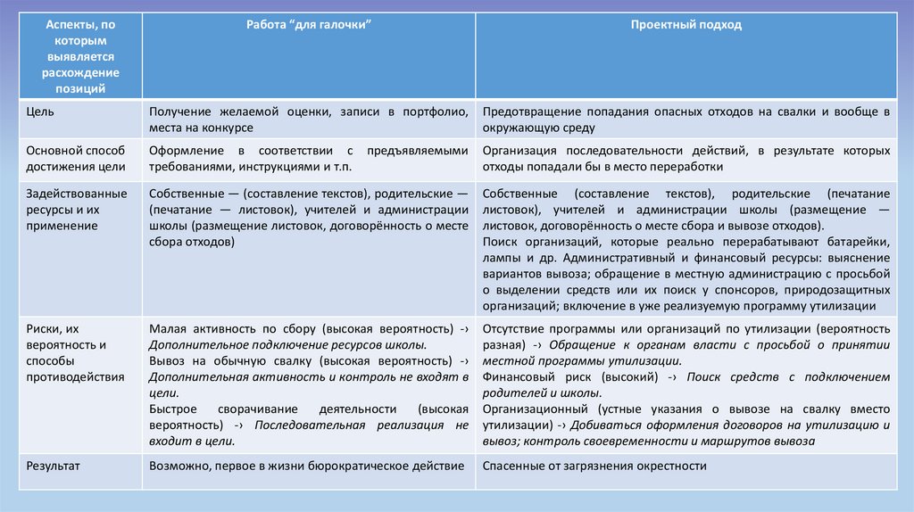 Если рассматривать школьные проекты, то один из важнейших внутреннихрисков связан с постановкой, а точнее с подменой цели.