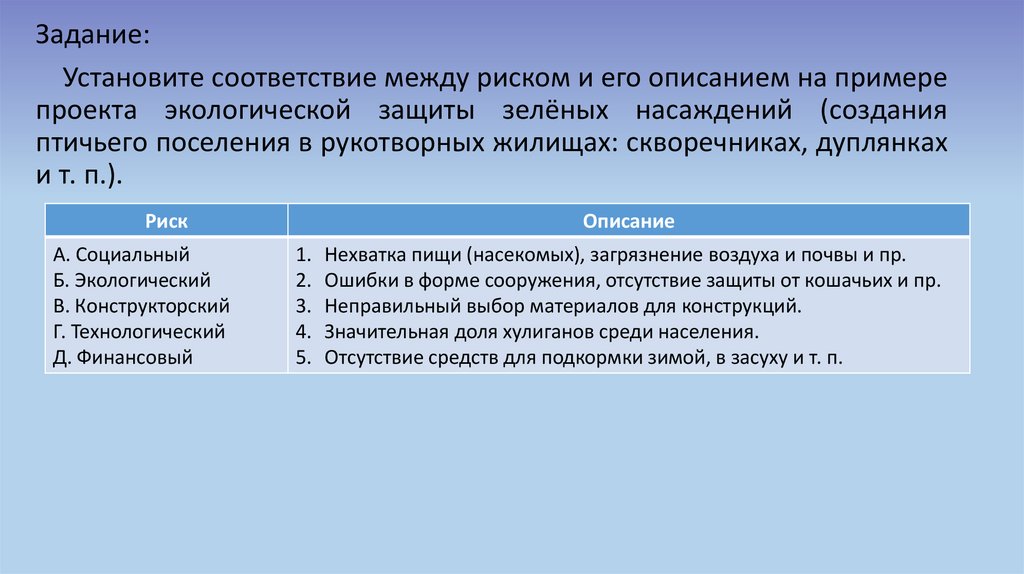 то нужно обозначить хотя бы крупные группы рисков, связанных с этой проблемой.