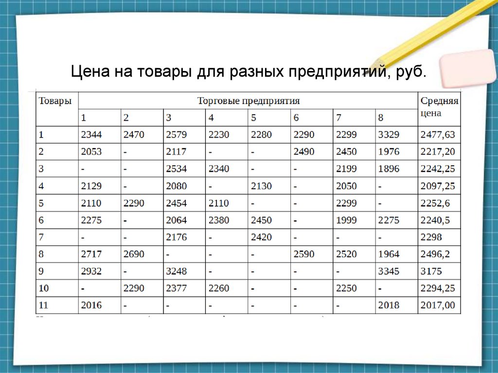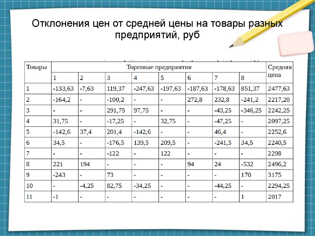 Отклонения цен от средней цены на товары разныхпредприятий, руб