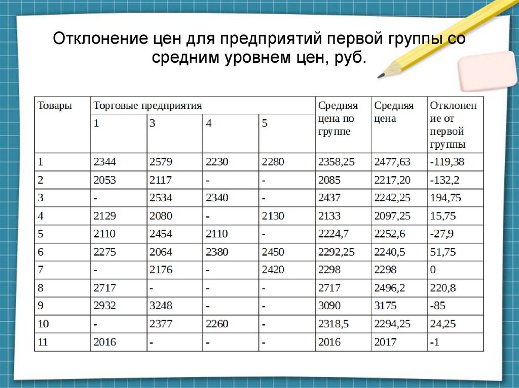 Отклонение цен для предприятий первой группы сосредним уровнем цен, руб.