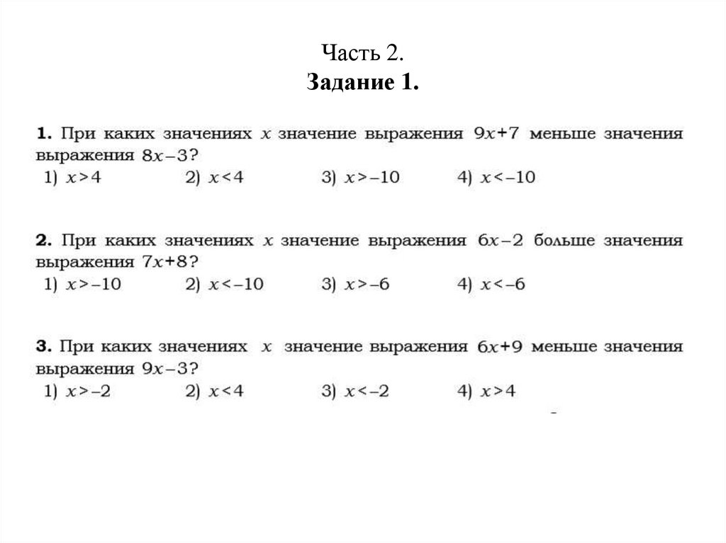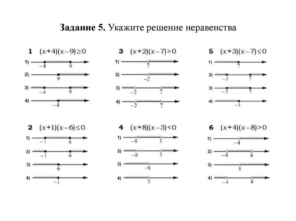 Задание 3. На каком рисунке изображено множестворешений неравенства?