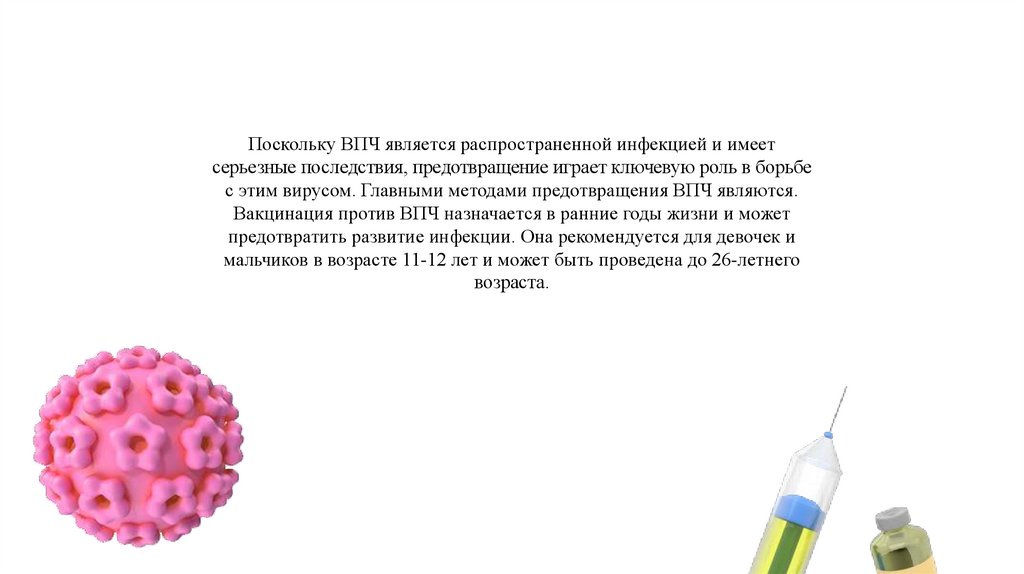 Поскольку ВПЧ является распространенной инфекцией и имеетсерьезные последствия, предотвращение играет ключевую роль в борьбе