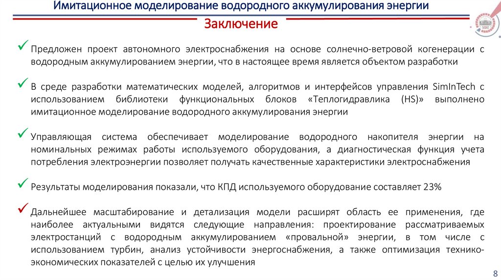 Имитационное моделирование водородного аккумулирования энергииОбъект моделирования Проект автономного энергоснабжения