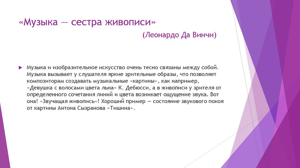 «Музыка — сестра живописи»(Леонардо Да Винчи)