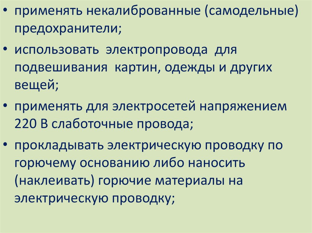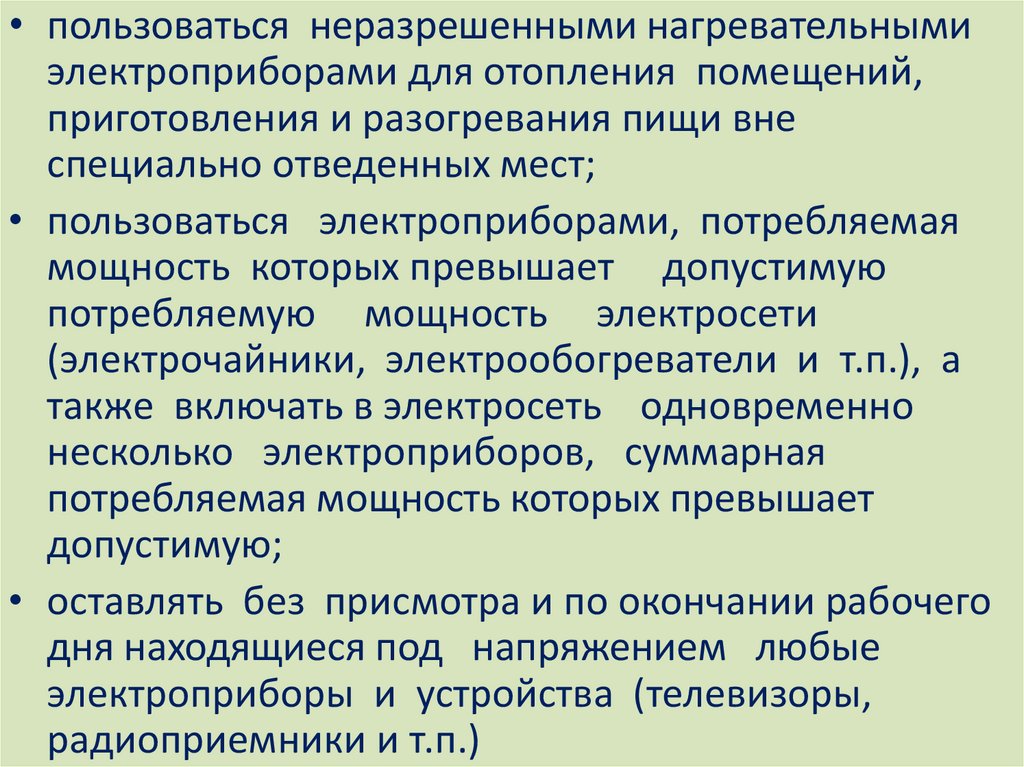 • пользоваться неразрешенными нагревательнымиэлектроприборами для отопления помещений,