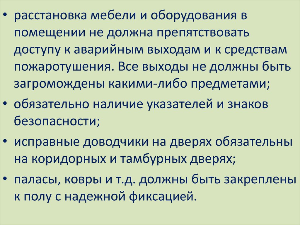 • расстановка мебели и оборудования впомещении не должна препятствовать