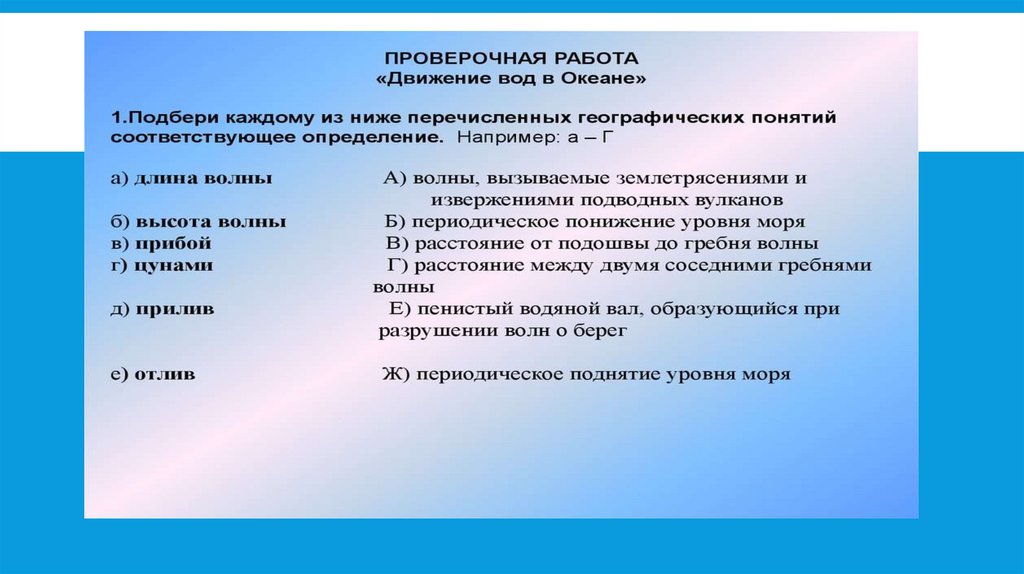 7.3.3.6 - классифицирует и объясняет движение океанических вод