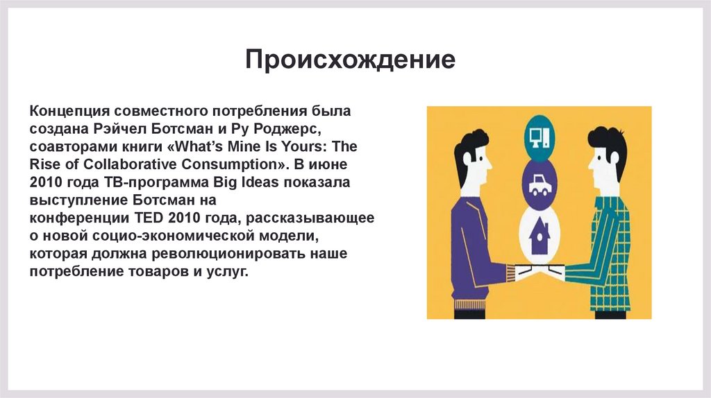 ПроисхождениеКонцепция совместного потребления была