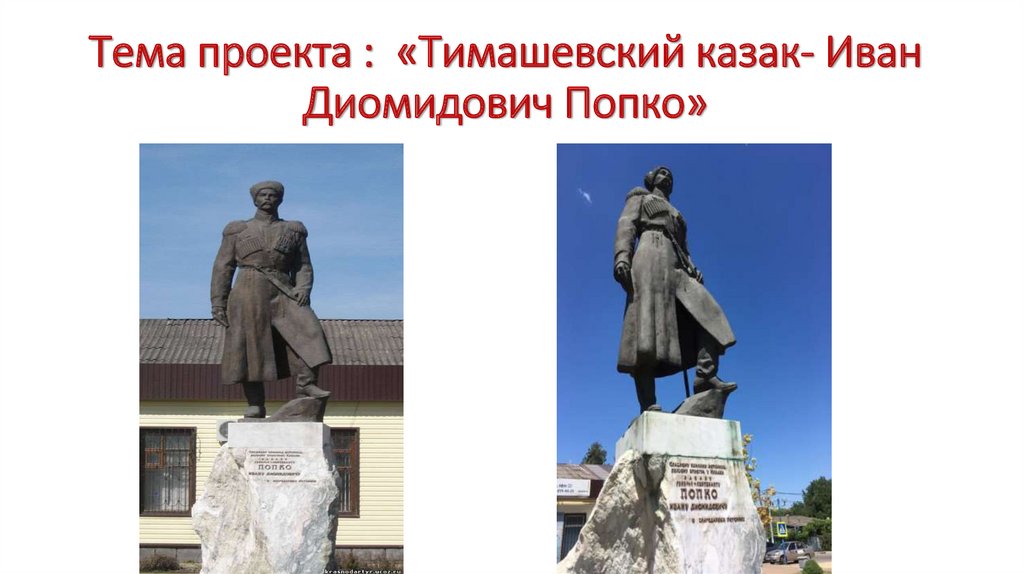 Тема проекта : «Тимашевский казак- ИванДиомидович Попко»