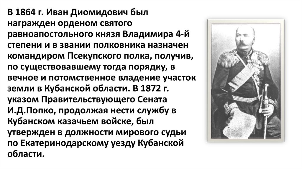 Генерал-лейтенант Иван Диомидович Попкоизвестный северокавказский деятель