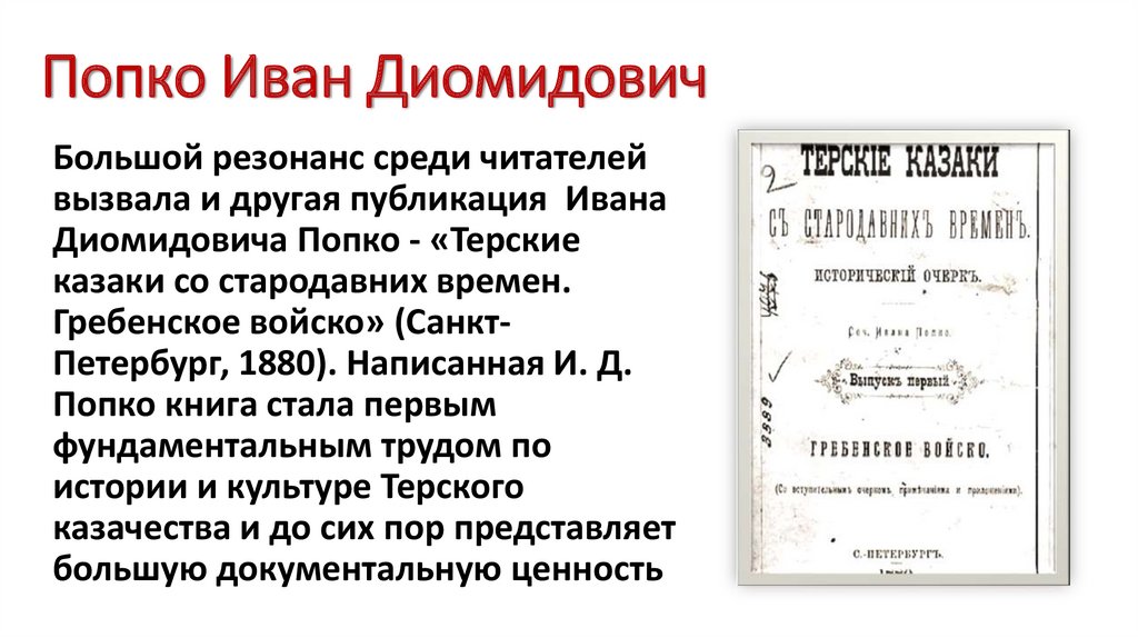 Гребенское войско» (СанктПетербург, 1880). Написанная И. Д.