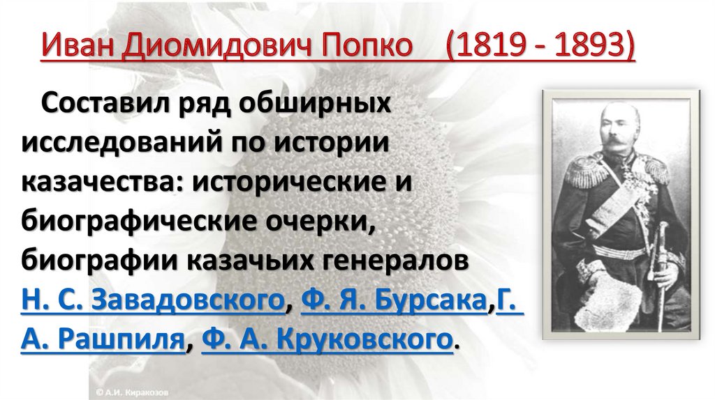 Иван Диомидович Попко (1819 - 1893)Составил ряд обширных