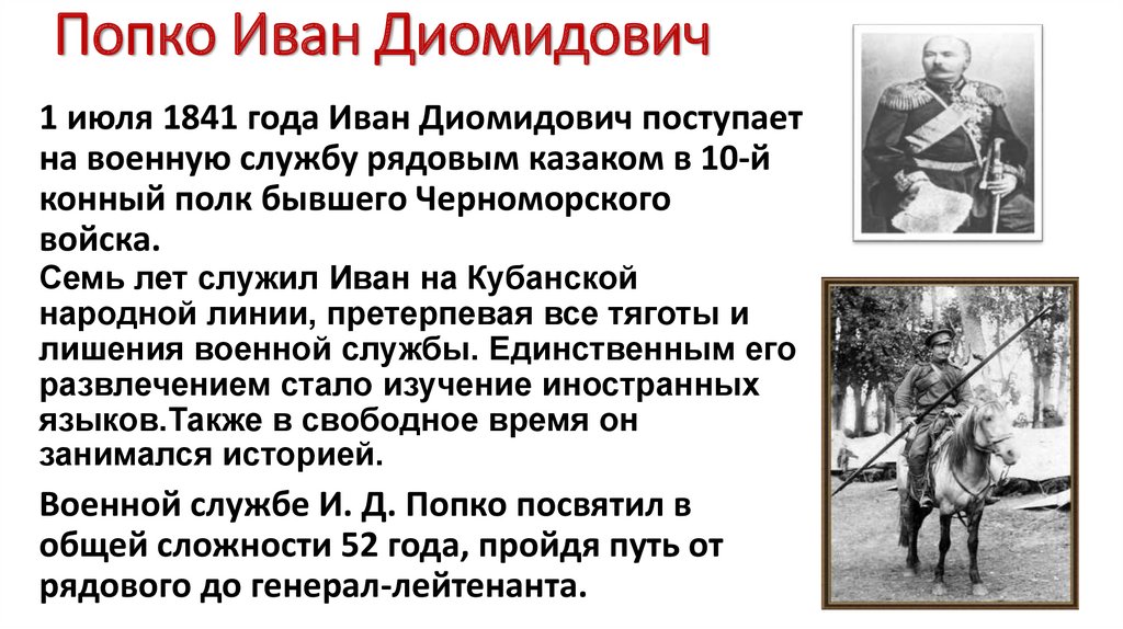 Попко Иван Диомидович1 июля 1841 года Иван Диомидович поступает