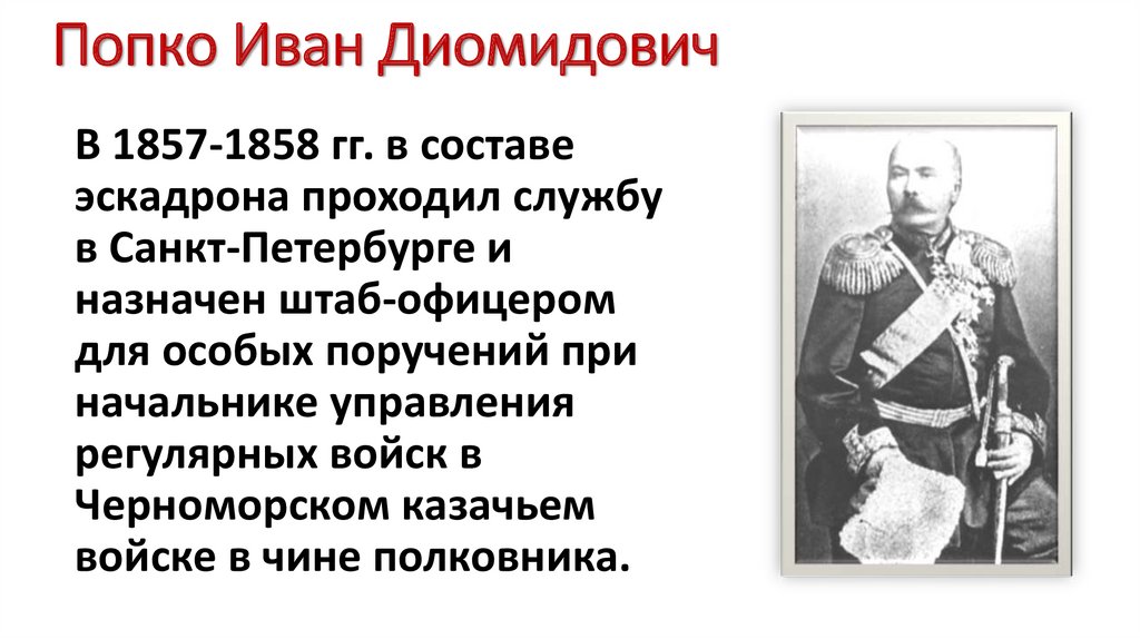 Попко Иван ДиомидовичВ 1857-1858 гг. в составе