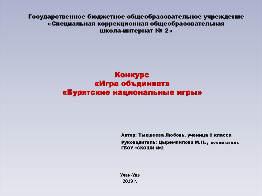 Конкурс «Игра объдиняет». «Бурятские национальные игры»