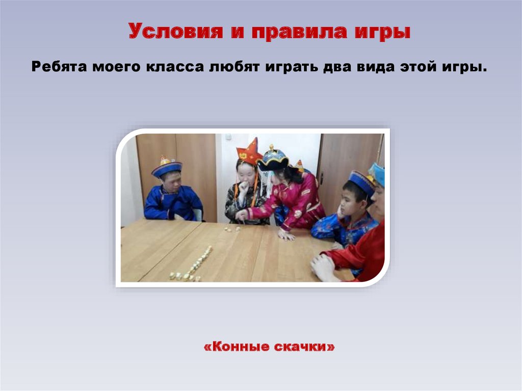 Условия и правила игрыРебята моего класса любят играть два вида этой игры.
