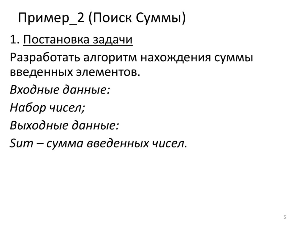 Пример_2 (Поиск Суммы)1. Постановка задачи